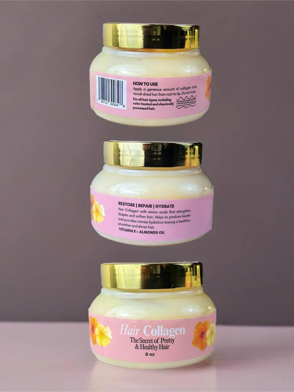 Hair Collagen with amino acids that strengthen, shapes and soften hair.